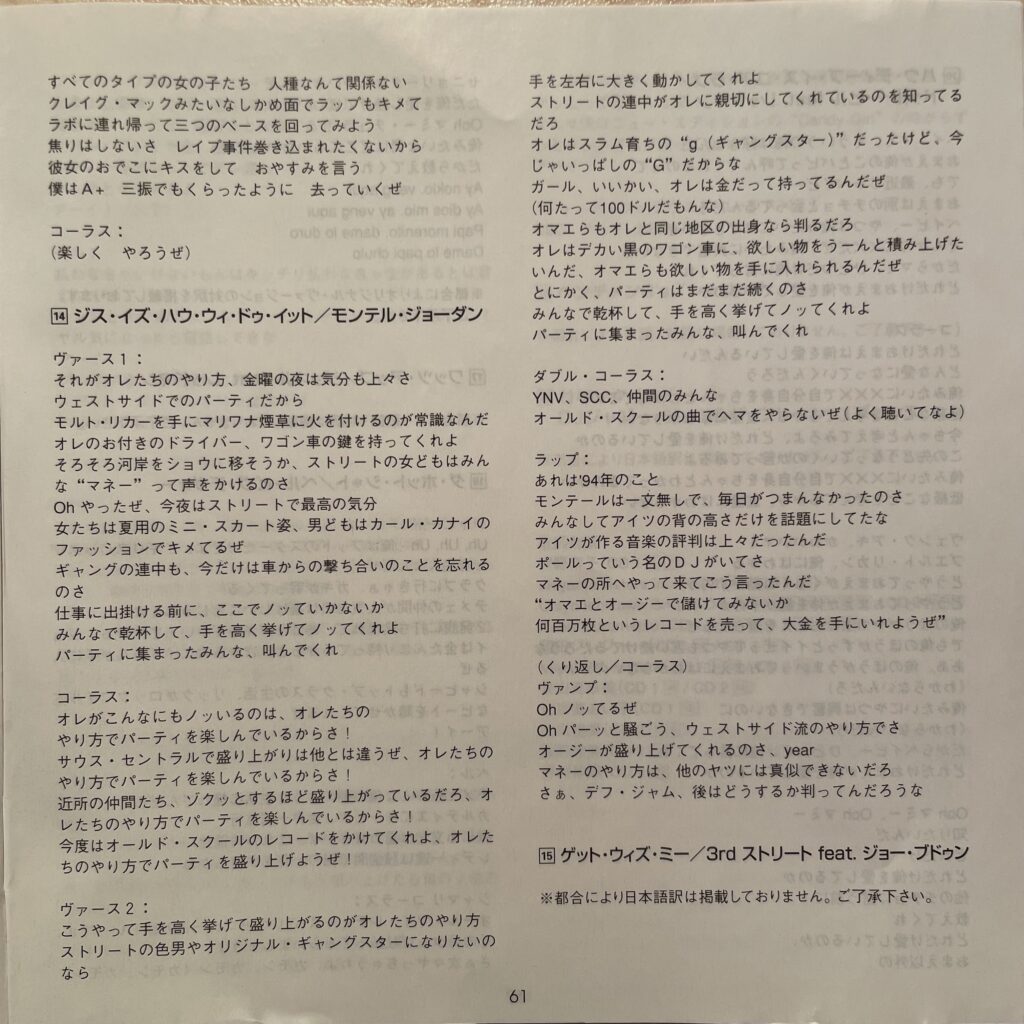 ウェッサイの曲だからウェッサイに繋ぐのも自然だし、元ネタがスリック・リックでニューヨークだから、ニューヨークに繋いでも自然だし、色々展開できる曲でもある。